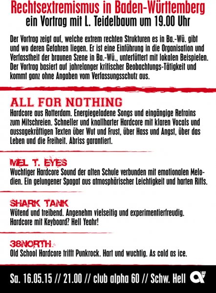 Sa. 16.05.15 // 19.00 // club alpha 60// Schwäbisch Hall