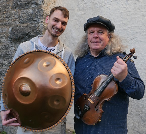 So könnte man das eine Musikensemble dieses einzigartigen Konzertereignisses umschreiben. Timo Grobshäußer (Handpan) und Jochen Narciß-Sing (Violine) - beide Meister auf ihren Instrumenten - haben sich anläßlich des 1. Haller Straßenmusikfestivals kennen gelernt und nun als Duo zusammengefunden. Beide Musiker improvisieren mit feinem Klang und Rhythmus und kurven mit verschiedenen Melodiesträngen in den Gehörgängen ihrer Zuhörer herum. Einfach erstaunlich wie Rhythmus und Melodie bei diesem Duo miteinander verschmelzen.
