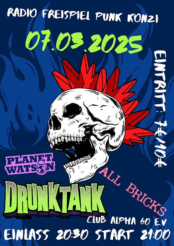 ALL BRICKS aus Ulm spielen seit 2009 energiegeladenen Punkrock mit leidenschaftlichen, gesellschaftskritischen Texten. Ihre Musik behandelt Themen wie Freundschaft, Politik und Gesellschaft und überzeugt mit eingängigen Melodien und kraftvollen Riffs. Die Band hat sich als feste Größe in der Szene etabliert und bereits als Support für Good Riddance und Dritte Wahl gespielt. Sie waren auf Festivals wie dem Obstwiesenfestival, dem Pfleghof Open Air und dem Blaurock Openair zu sehen und haben in Locations wie dem Roxy Ulm und zahlreichen Jugendzentren in Süddeutschland gespielt. Mit ihrer intensiven Bühnenpräsenz und treuen Fangemeinde bleiben All Bricks ein wichtiger Teil der deutschen Punkrock-Szene.